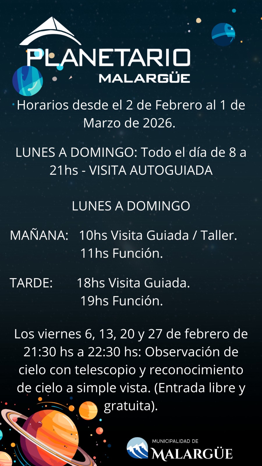 planetario horarios febrero